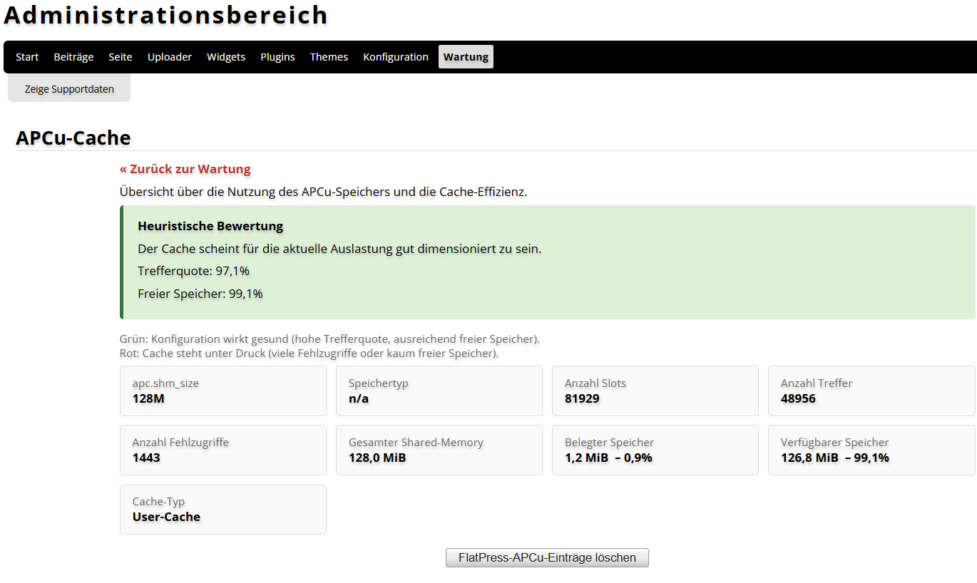 If the menu item “APCu cache status” is displayed in the admin area -> Maintenance.